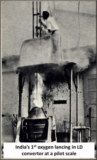Oxygen lancing for efficient and clean steelmaking was first introduced in Indian steelmaking industries during the 1950s to early 1960s. In a noteworthy contribution in the year 1957-58, NML set up first pilot plant facility of oxygen lancing in the scale of 0.1 ton for R&D activities in the quest to generate data which were envisaged to be helpful in the country’s steel expansion programme.